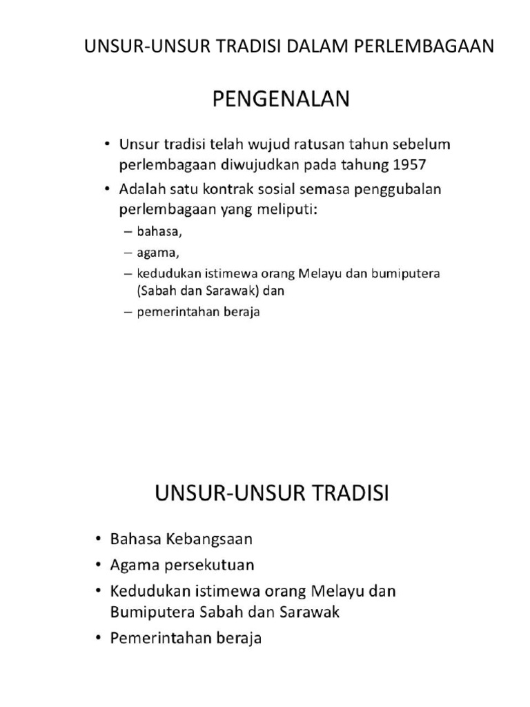 Related : Unsur Tradisi Dalam Perlembagaan Persekutuan : Pemerintahan unsur 3.agama beraja persekutuan tradisi 2.bahasa kebangsaan telah wujud dalam sistem..